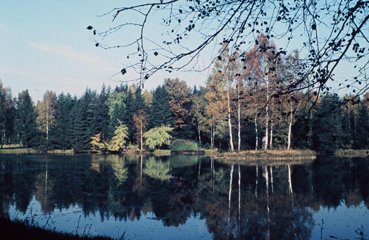 Von Wald umgebener Steinteich in Großröhrsdorf