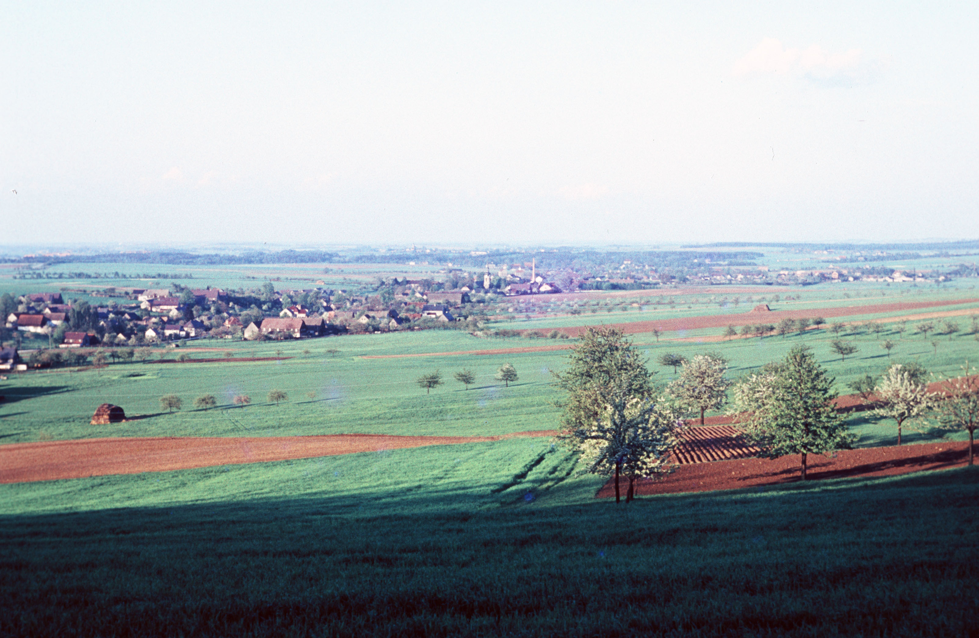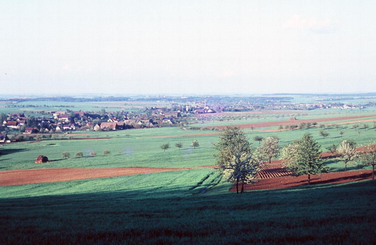 Blick von Anhöhe über Grün- und Ackerland auf Burkau
