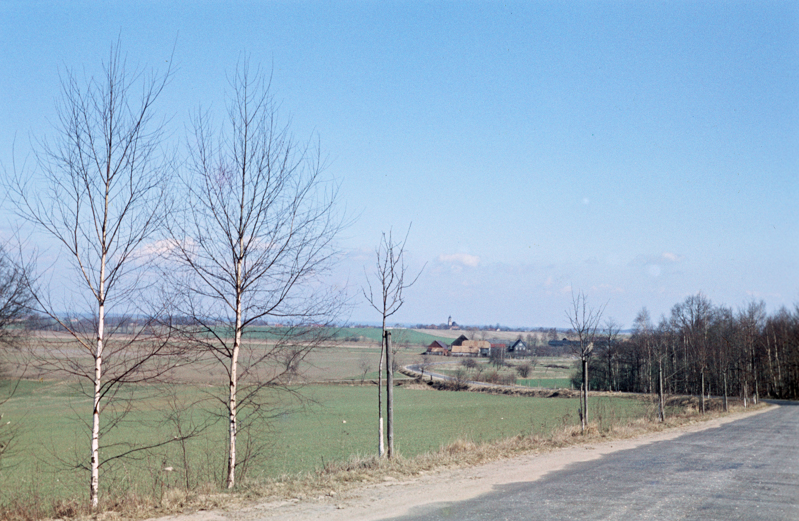 Straße durch Grün-, und Ackerland nach Taschendorf und Uhyst am Taucher