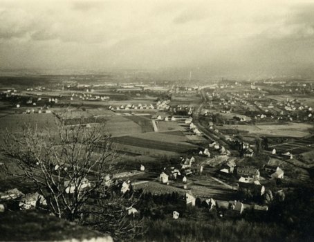 Blick vom Landeskrone-Berg auf die Stadt Görlitz, linkes Foto: Bruno Häcker, 1938, rechtes Foto: Anonym, 1950er