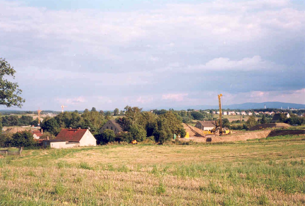 Ludwigsdorf Blick vom jetzigen Kirchsteg auf den Fortschritt des Autobahnbaus, gleicher Standort wie das Foto von 1952