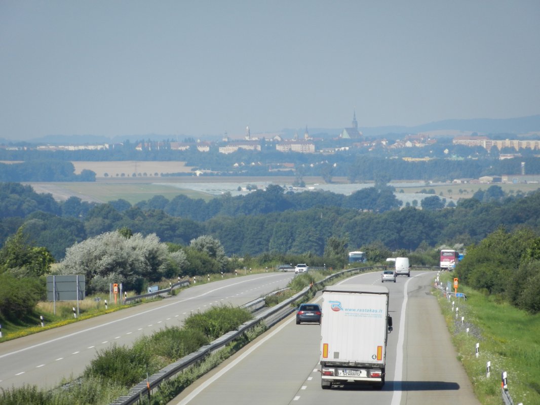 Blick von der Brücke über der A 4 bei Gröditz (Stadt Weißenberg) in Richtung Bautzen