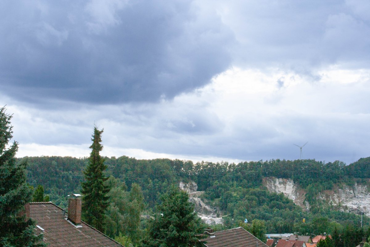 Blick von der Klaus-Groth-Straße in Osterode am Harz auf den Uehrder Berg (Gipsabbau)