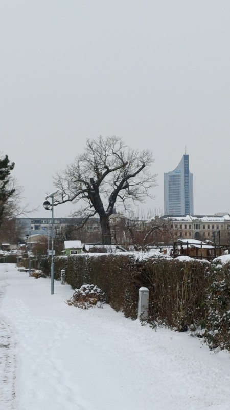 Blick von der Kleingartenanlage "Johannistal" zum Cityhochhaus (Uniriese)